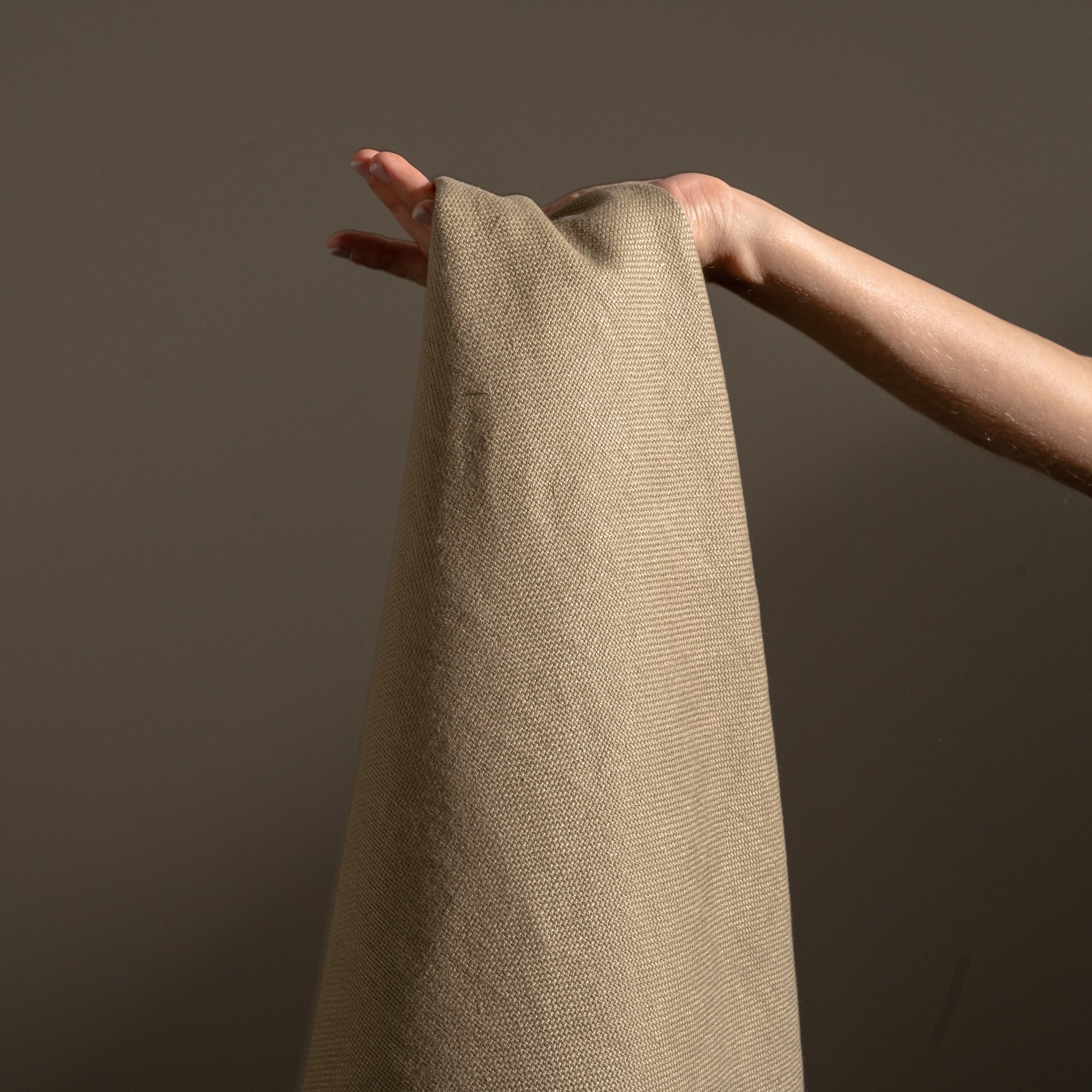 14.5 oz/sq yard 100% Upholstery Weight Linen in Warm Taupe Swatch